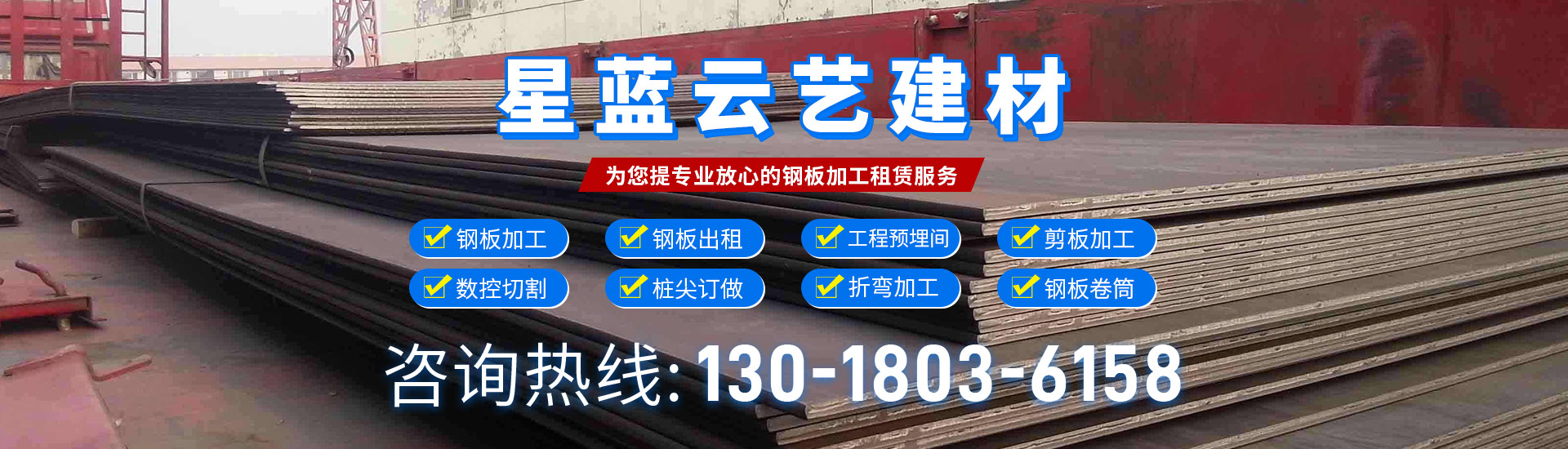 湖北星藍(lán)云藝建材科技有限責(zé)任公司 ,是主要提供 鋼材加工、鋼板出租、鋼板出售、鋼板回收、鋼格構(gòu)柱加工、工程預(yù)埋件加工、剪板加工、激光切割(火焰、等離子、激光等)加工、國標(biāo)樁尖加工、非國標(biāo)樁尖加工、折彎加工、鋼護(hù)筒加工、樁帽加工、鋼墊片加工、鋼板開孔、止水鋼板加工、泥漿池加工、以及其他鋼板加工 項(xiàng)目一站式服務(wù)的公司。 鋼材加工 :湖北星藍(lán)云藝建材科技有限責(zé)任公司加工鋼板一類產(chǎn)品,貨源充足,長期各類加工鋼板庫......